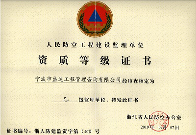 資質(zhì)是企業(yè)生存和發(fā)展的基礎。公司人防工程監理乙級資質(zhì)的成功晉升,是公司繼年初年取得造價(jià)咨詢(xún)乙級資質(zhì)后的又一資質(zhì)建設方面的重大進(jìn)步,使我盛達工程管理咨詢(xún)有限公司在同行業(yè)中的競爭能力又得到了提升,為公司能更好的承接高標準的人防監理業(yè)務(wù)奠定了堅實(shí)的基礎。